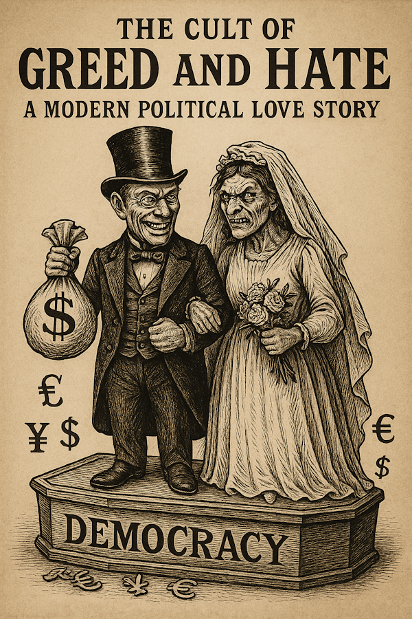 Beware, citizens: when Greed and Hate take the throne, democracy itself becomes a sideshow attraction — tickets available at the usual inflated price.